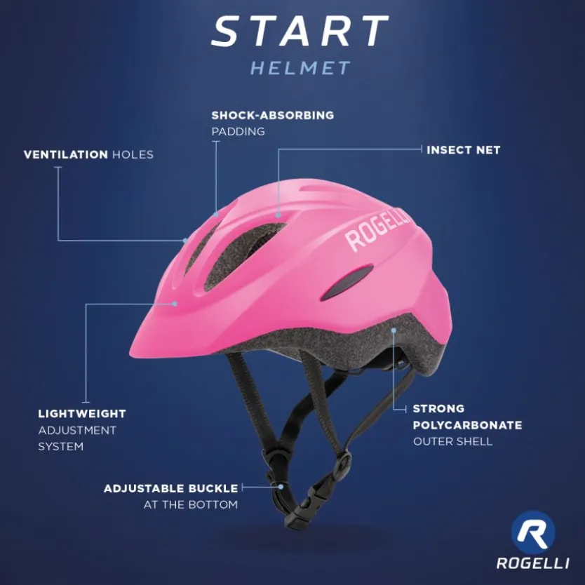 De Start fietshelm van Rogelli is een instapmodel helm die speciaal is ontworpen voor kids en kan ook gedragen worden door volwassenen met een kleinere hoofdmaat. De lichtgewicht, in-mold fietshelm is voorzien van een schokabsorberende padding die het hoofd bescherming biedt tijdens valpartijen. Daarnaast neemt de padding transpiratie op. De binnen voering van de helm is wasbaar, zodat je altijd met een fris gevoel aan de start van jouw volgende wielertocht kunt beginnen.